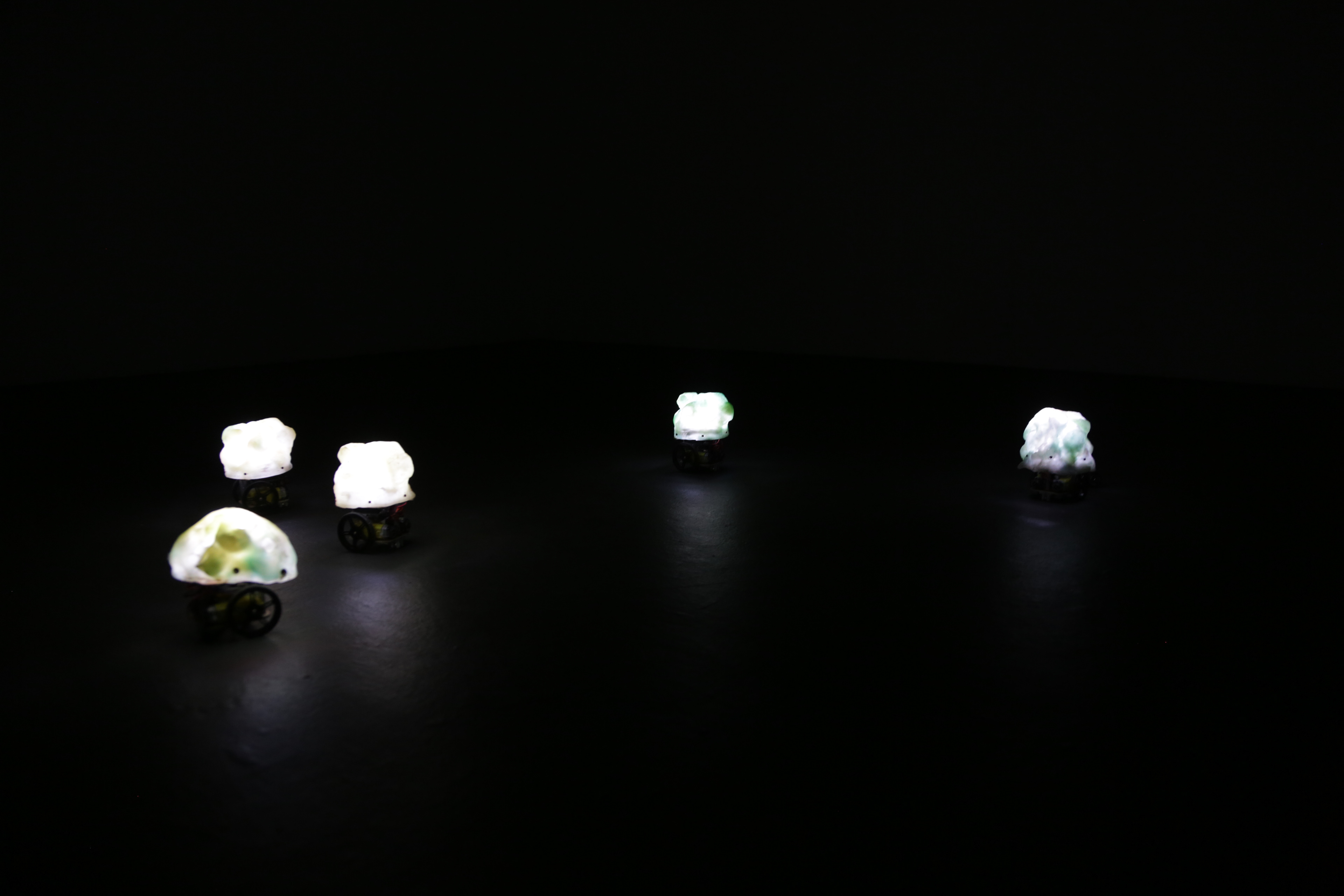 These robotic sculptures which are programmed with light-sensors can only move in the dark space emitting their own lights and they create choreographic movements made by the lights and time with audiences.