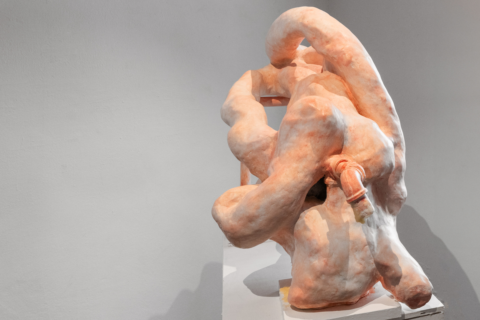 Untitled I, 60cm x35cm x 50cm, 파이프, 나무, 석고, 지점토에 채색, 2024